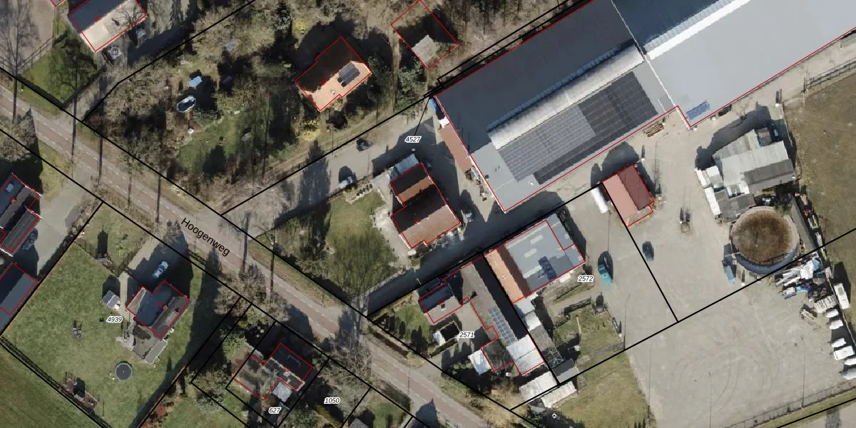 Het perceel waarop Hoogenweg 52 staat heeft een oppervlakte van 1,8 ha. Dit is een zeer groot perceel. De perceeloppervlakte wordt geregistreerd door het Kadaster. Gedetailleerde informatie over de maten van dit perceel kunt u vinden in het rapport Kadastrale kaart met maatvoering van Hoogenweg 52.