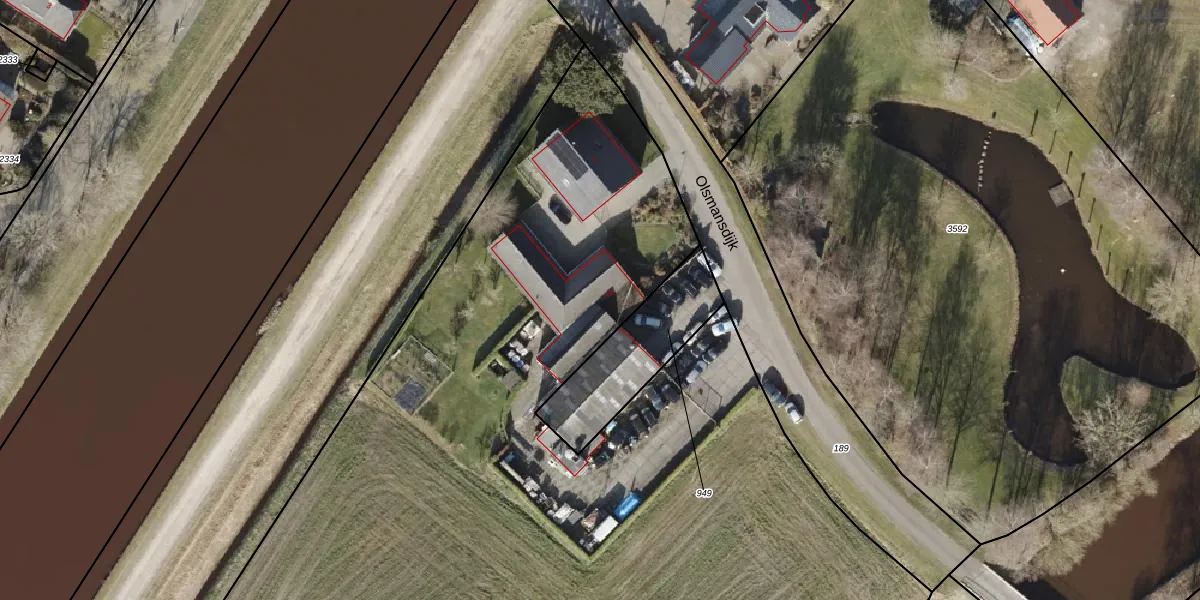 Het perceel waarop Olsmansdijk 1-a staat heeft een oppervlakte van 1,6 ha. Dit is een zeer groot perceel. De perceeloppervlakte wordt geregistreerd door het Kadaster. Gedetailleerde informatie over de maten van dit perceel kunt u vinden in het rapport Kadastrale kaart met maatvoering van Olsmansdijk 1-a.