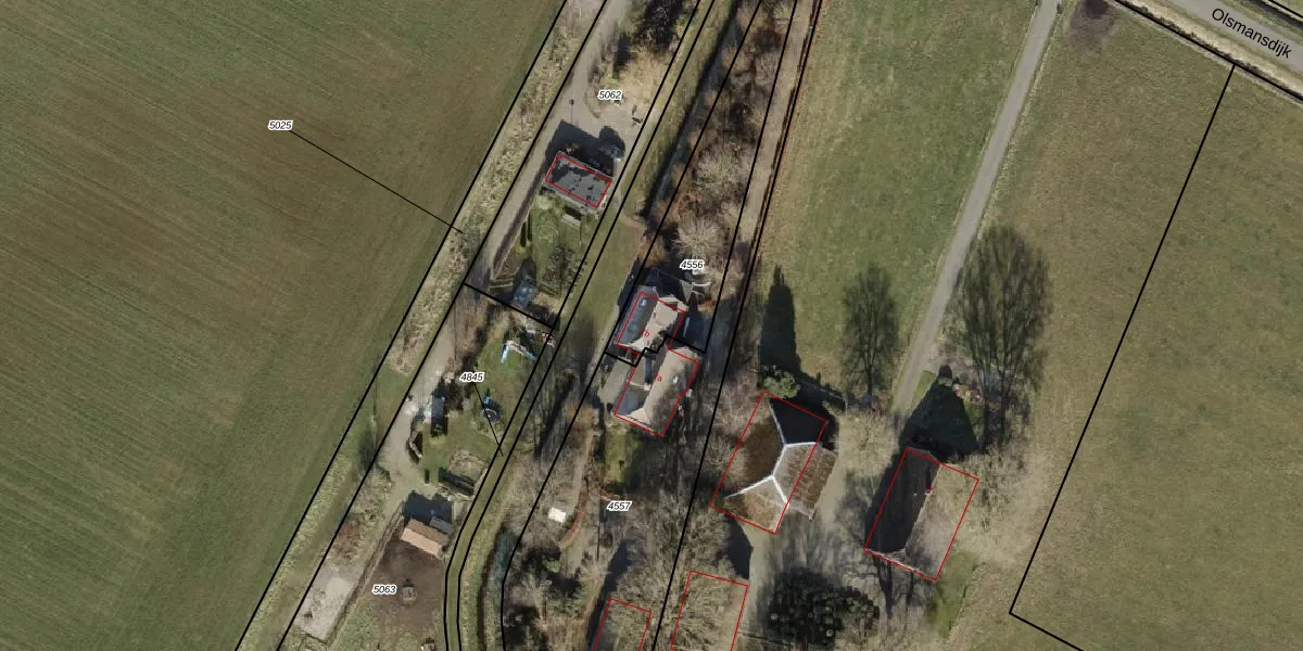 Het perceel waarop Olsmansdijk 7-b staat heeft een oppervlakte van 635 m². Dit is een groot perceel. De perceeloppervlakte wordt geregistreerd door het Kadaster. Gedetailleerde informatie over de maten van dit perceel kunt u vinden in het rapport Kadastrale kaart met maatvoering van Olsmansdijk 7-b.
