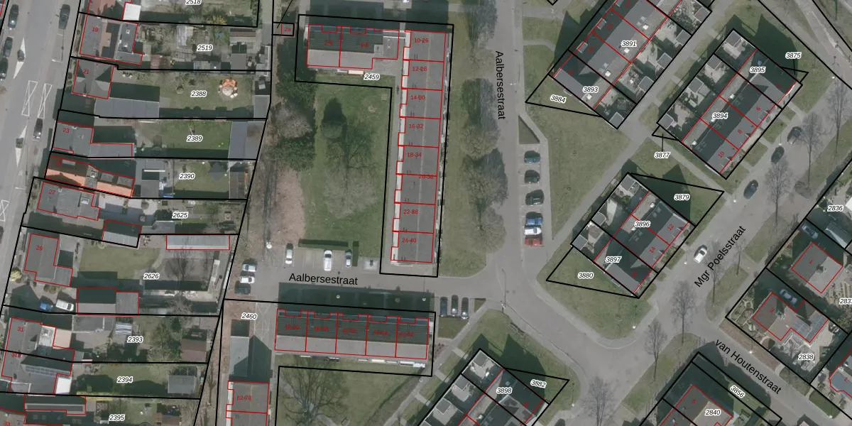 Aalbersestraat 38 is gelegen op kadastraal perceel WDT00D2459. Deze kadastrale aanduiding is uniek en wordt gebruikt door het Kadaster om eigendomsrechten en andere zakelijke rechten vast te leggen. Het perceel maakt onderdeel uit van de kadastrale gemeente Woensdrecht.