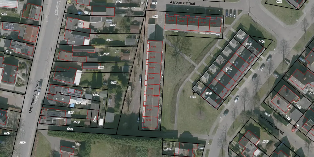 Het perceel waarop Aalbersestraat 84 staat heeft een oppervlakte van 1620 m². Dit is een zeer groot perceel. De perceeloppervlakte wordt geregistreerd door het Kadaster. Gedetailleerde informatie over de maten van dit perceel kunt u vinden in het rapport Kadastrale kaart met maatvoering van Aalbersestraat 84.