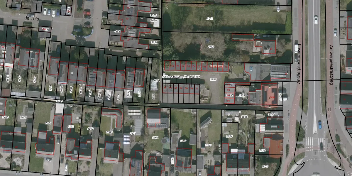 Het perceel waarop Antwerpsestraatweg 5-d staat heeft een oppervlakte van 33 m². Dit is een klein perceel. De perceeloppervlakte wordt geregistreerd door het Kadaster. Gedetailleerde informatie over de maten van dit perceel kunt u vinden in het rapport Kadastrale kaart met maatvoering van Antwerpsestraatweg 5-d.