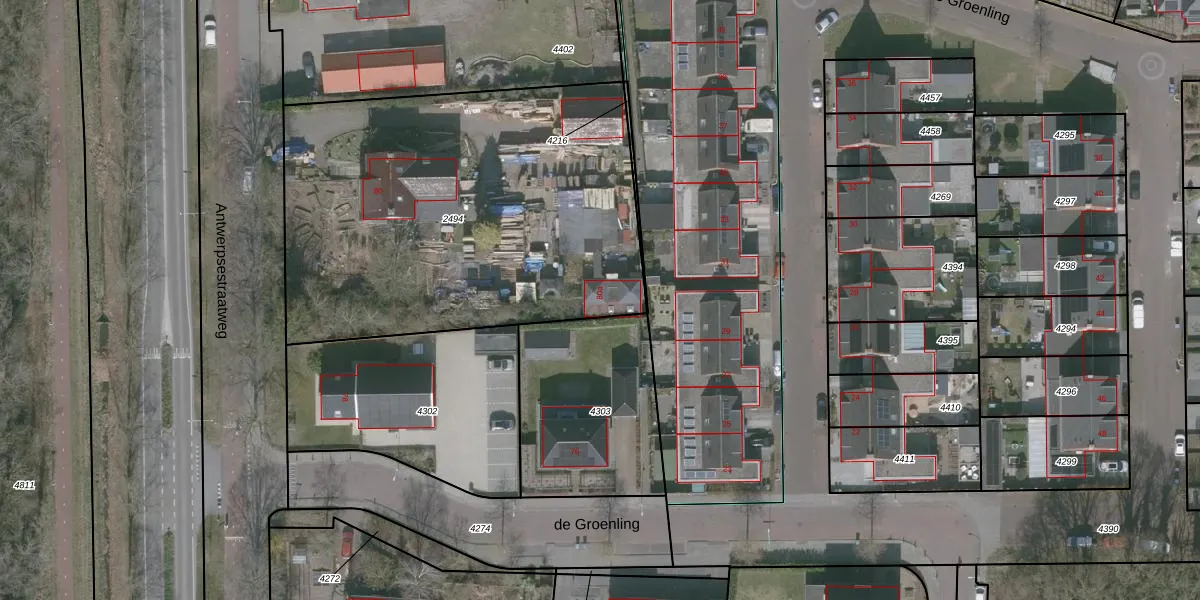 Het perceel waarop Antwerpsestraatweg 80-a staat heeft een oppervlakte van 2200 m². Dit is een zeer groot perceel. De perceeloppervlakte wordt geregistreerd door het Kadaster. Gedetailleerde informatie over de maten van dit perceel kunt u vinden in het rapport Kadastrale kaart met maatvoering van Antwerpsestraatweg 80-a.