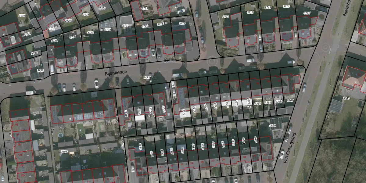 Het perceel waarop Bijentiende 22 staat heeft een oppervlakte van 250 m². Dit is een middelgroot perceel. De perceeloppervlakte wordt geregistreerd door het Kadaster. Gedetailleerde informatie over de maten van dit perceel kunt u vinden in het rapport Kadastrale kaart met maatvoering van Bijentiende 22.
