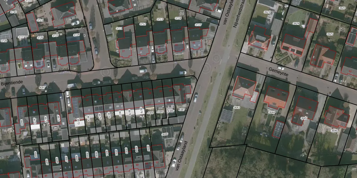 Het perceel waarop Bijentiende 42 staat heeft een oppervlakte van 259 m². Dit is een middelgroot perceel. De perceeloppervlakte wordt geregistreerd door het Kadaster. Gedetailleerde informatie over de maten van dit perceel kunt u vinden in het rapport Kadastrale kaart met maatvoering van Bijentiende 42.