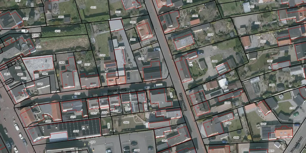 Binnenweg 9 is gelegen op kadastraal perceel WDT00B3383. Deze kadastrale aanduiding is uniek en wordt gebruikt door het Kadaster om eigendomsrechten en andere zakelijke rechten vast te leggen. Het perceel maakt onderdeel uit van de kadastrale gemeente Woensdrecht.
