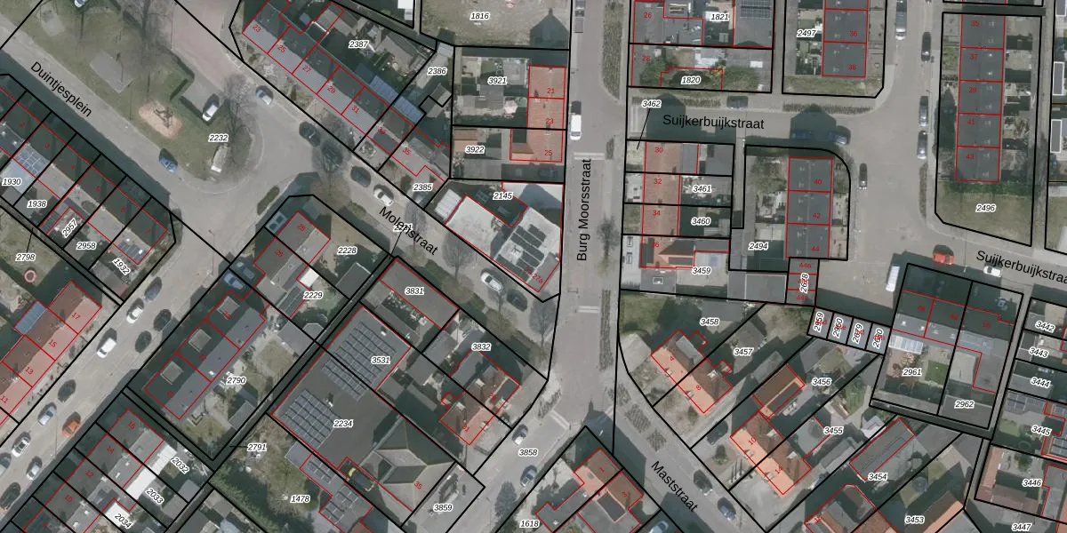 Het perceel waarop Burg Moorsstraat 27 staat heeft een oppervlakte van 383 m². Dit is een groot perceel. De perceeloppervlakte wordt geregistreerd door het Kadaster. Gedetailleerde informatie over de maten van dit perceel kunt u vinden in het rapport Kadastrale kaart met maatvoering van Burg Moorsstraat 27.