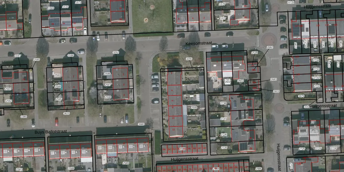 Het perceel waarop Buys Ballotstraat 4 staat heeft een oppervlakte van 1023 m². Dit is een zeer groot perceel. De perceeloppervlakte wordt geregistreerd door het Kadaster. Gedetailleerde informatie over de maten van dit perceel kunt u vinden in het rapport Kadastrale kaart met maatvoering van Buys Ballotstraat 4.