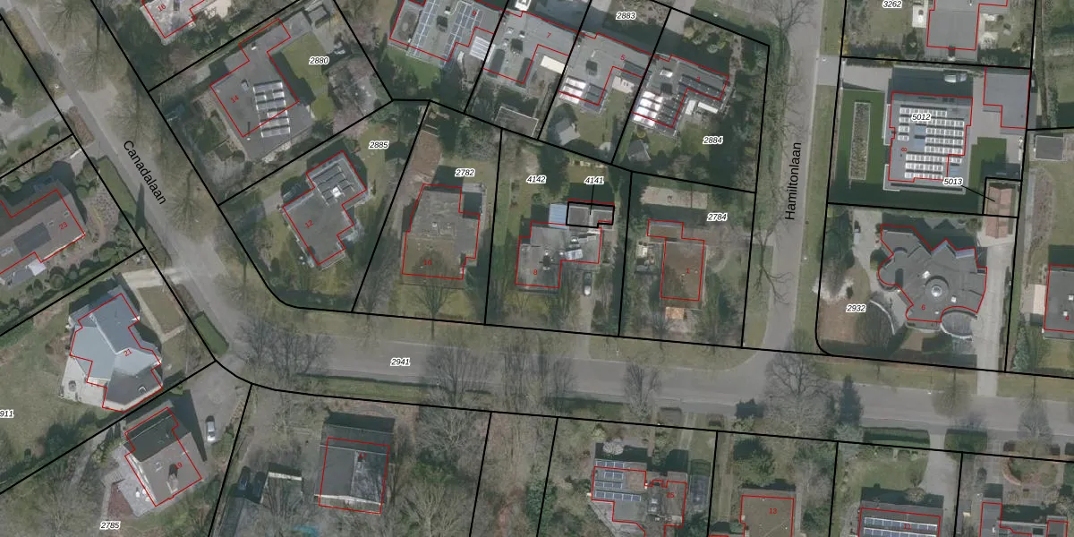 Het perceel waarop Canadalaan 8 staat heeft een oppervlakte van 806 m². Dit is een groot perceel. De perceeloppervlakte wordt geregistreerd door het Kadaster. Gedetailleerde informatie over de maten van dit perceel kunt u vinden in het rapport Kadastrale kaart met maatvoering van Canadalaan 8.
