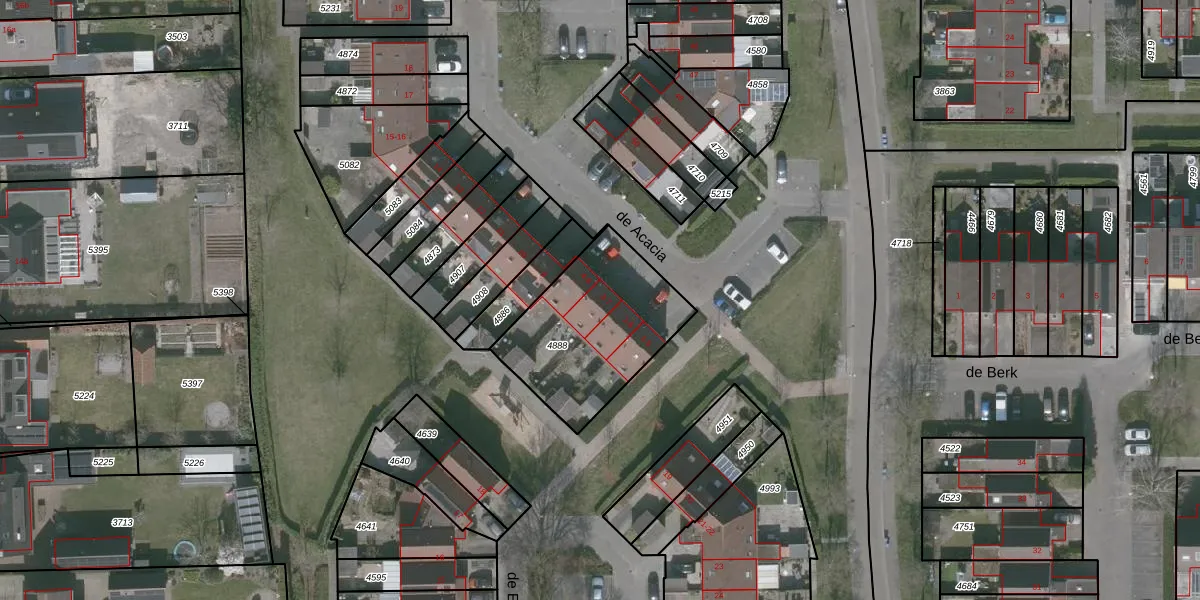 Het perceel waarop de Acacia 3 staat heeft een oppervlakte van 590 m². Dit is een groot perceel. De perceeloppervlakte wordt geregistreerd door het Kadaster. Gedetailleerde informatie over de maten van dit perceel kunt u vinden in het rapport Kadastrale kaart met maatvoering van de Acacia 3.