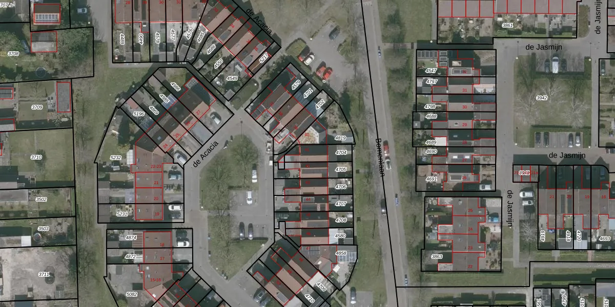 Het perceel waarop de Acacia 41 staat heeft een oppervlakte van 118 m². Dit is een middelgroot perceel. De perceeloppervlakte wordt geregistreerd door het Kadaster. Gedetailleerde informatie over de maten van dit perceel kunt u vinden in het rapport Kadastrale kaart met maatvoering van de Acacia 41.