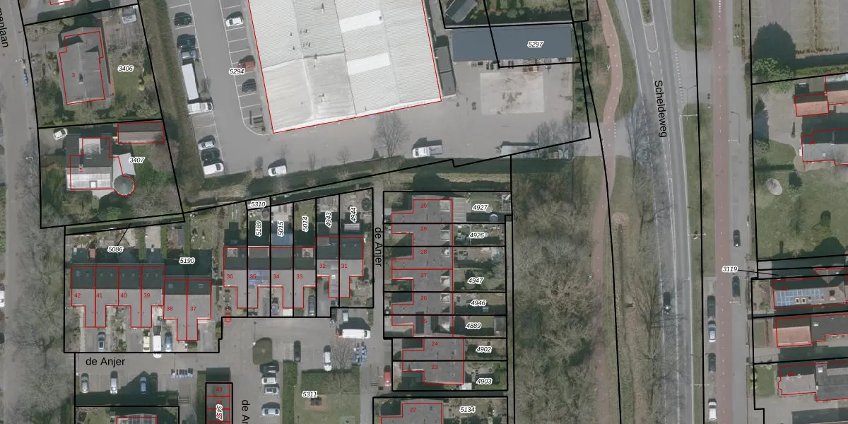 Het perceel waarop de Anjer 30 staat heeft een oppervlakte van 225 m². Dit is een middelgroot perceel. De perceeloppervlakte wordt geregistreerd door het Kadaster. Gedetailleerde informatie over de maten van dit perceel kunt u vinden in het rapport Kadastrale kaart met maatvoering van de Anjer 30.