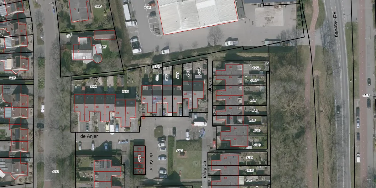 Het perceel waarop de Anjer 32 staat heeft een oppervlakte van 150 m². Dit is een middelgroot perceel. De perceeloppervlakte wordt geregistreerd door het Kadaster. Gedetailleerde informatie over de maten van dit perceel kunt u vinden in het rapport Kadastrale kaart met maatvoering van de Anjer 32.