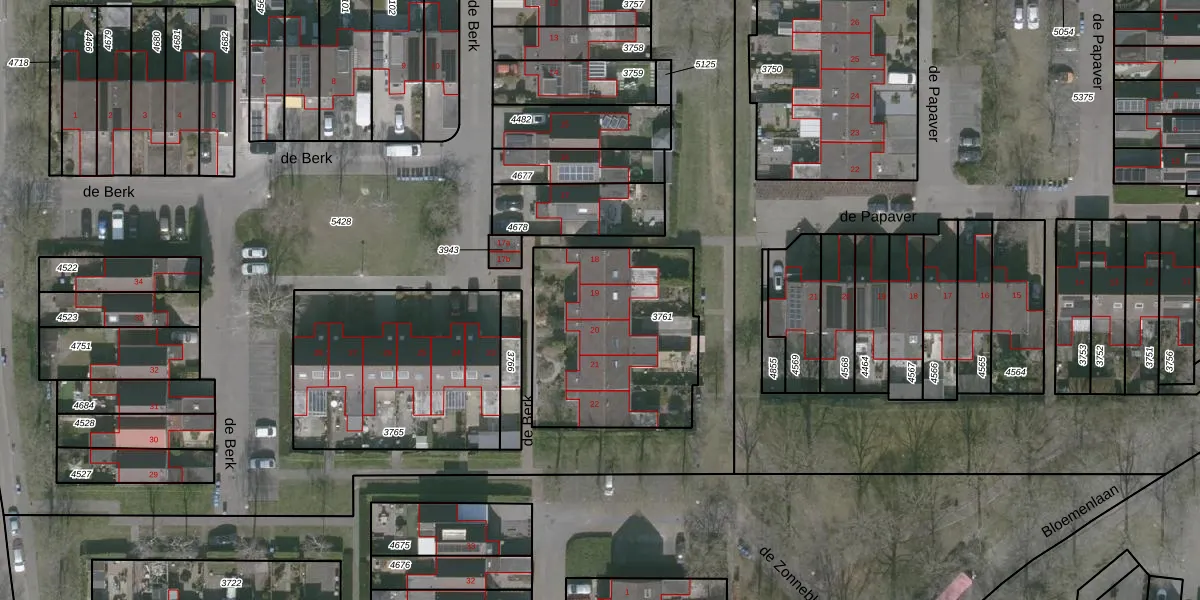 Het perceel waarop de Berk 19 staat heeft een oppervlakte van 812 m². Dit is een groot perceel. De perceeloppervlakte wordt geregistreerd door het Kadaster. Gedetailleerde informatie over de maten van dit perceel kunt u vinden in het rapport Kadastrale kaart met maatvoering van de Berk 19.