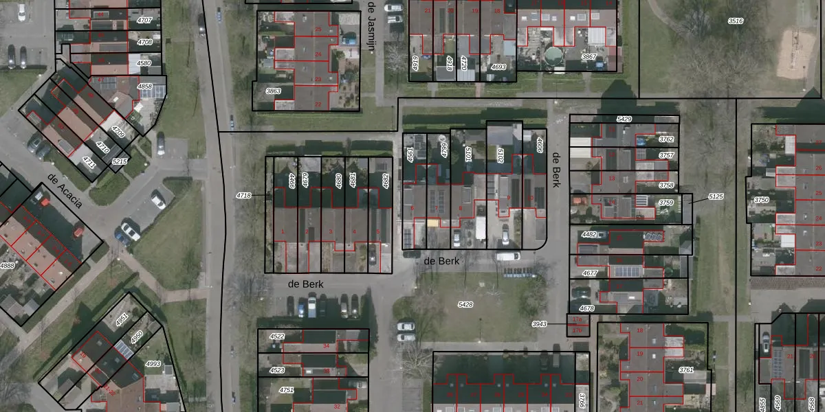 Het perceel waarop de Berk 6 staat heeft een oppervlakte van 165 m². Dit is een middelgroot perceel. De perceeloppervlakte wordt geregistreerd door het Kadaster. Gedetailleerde informatie over de maten van dit perceel kunt u vinden in het rapport Kadastrale kaart met maatvoering van de Berk 6.