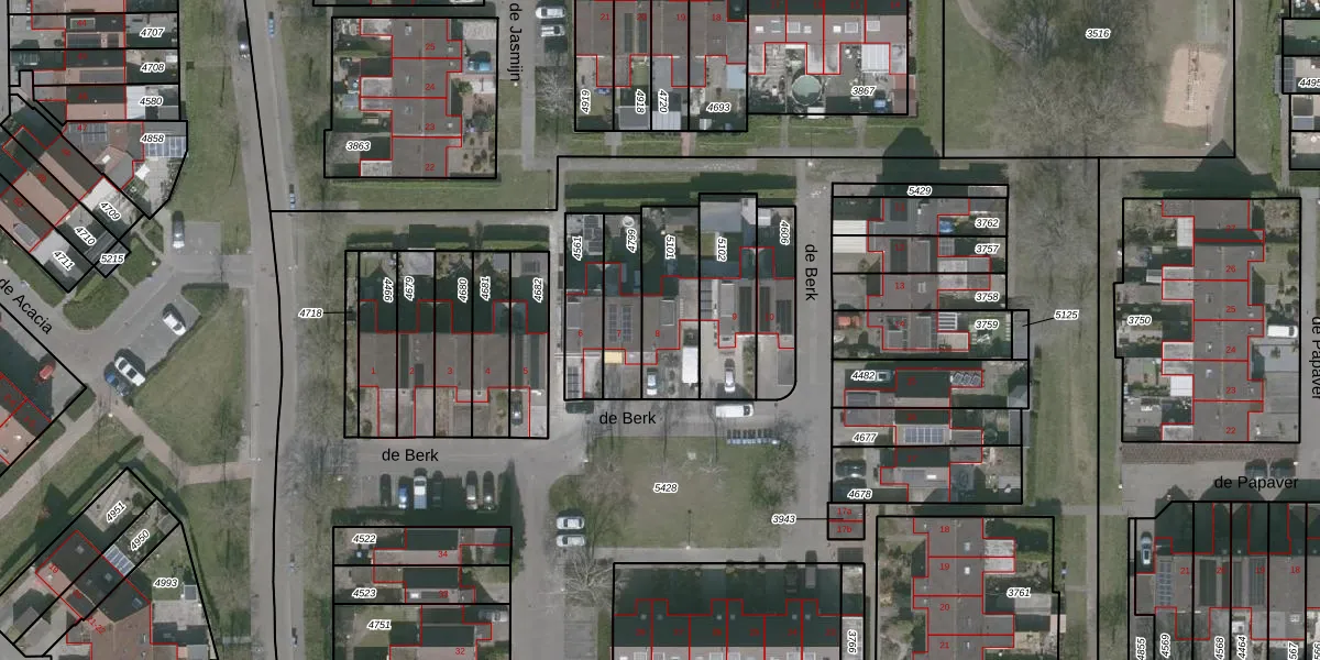 Het perceel waarop de Berk 8 staat heeft een oppervlakte van 255 m². Dit is een middelgroot perceel. De perceeloppervlakte wordt geregistreerd door het Kadaster. Gedetailleerde informatie over de maten van dit perceel kunt u vinden in het rapport Kadastrale kaart met maatvoering van de Berk 8.