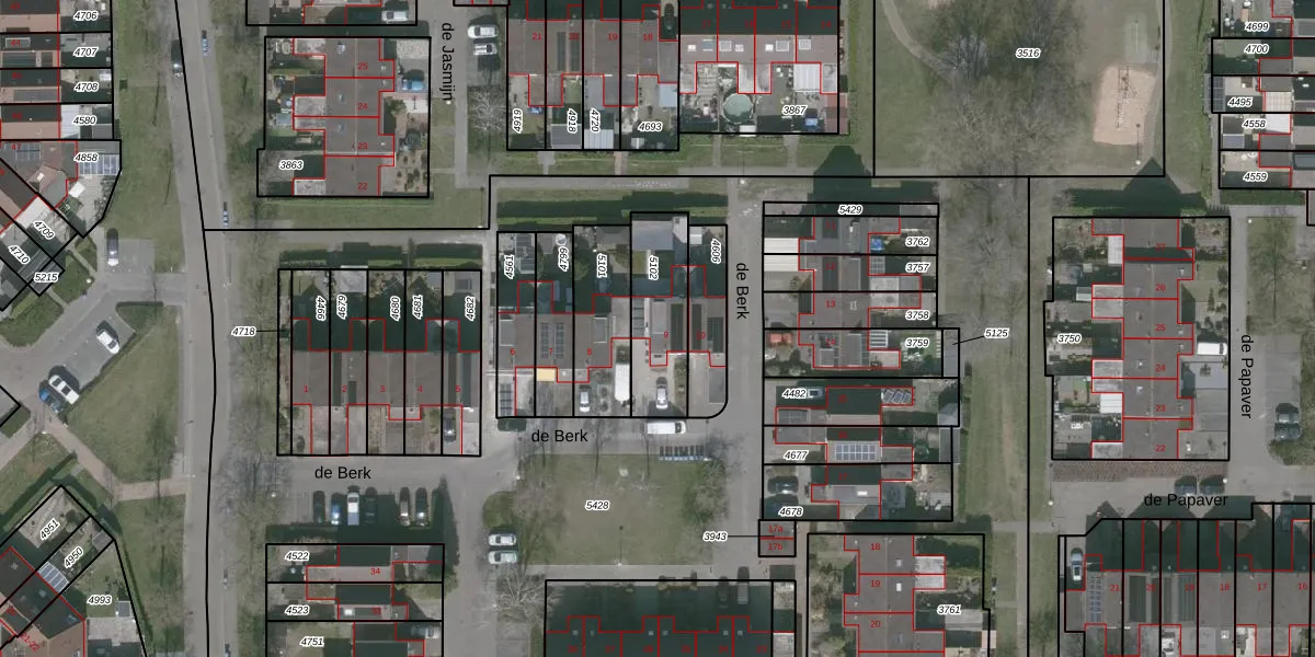 Gebruik de zoekbalk of klik op een perceel voor informatie over de adressen binnen dit perceel.