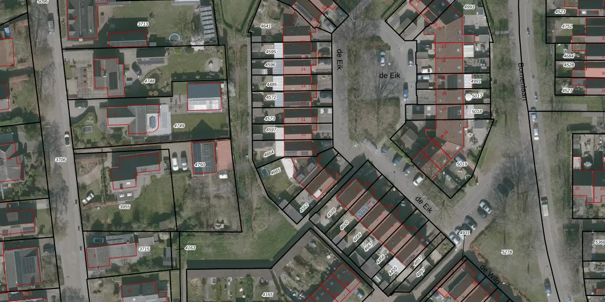 de Eik 9 is gelegen op kadastraal perceel WDT00G4664. Deze kadastrale aanduiding is uniek en wordt gebruikt door het Kadaster om eigendomsrechten en andere zakelijke rechten vast te leggen. Het perceel maakt onderdeel uit van de kadastrale gemeente Woensdrecht.