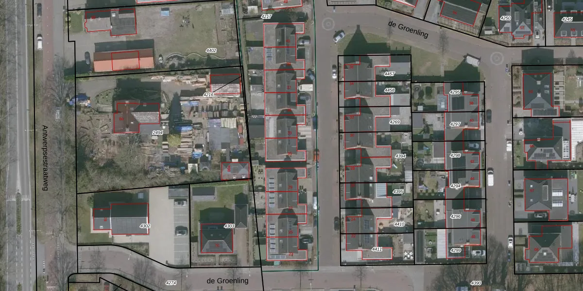 de Groenling 31 is gelegen op kadastraal perceel WDT00B4215. Deze kadastrale aanduiding is uniek en wordt gebruikt door het Kadaster om eigendomsrechten en andere zakelijke rechten vast te leggen. Het perceel maakt onderdeel uit van de kadastrale gemeente Woensdrecht.