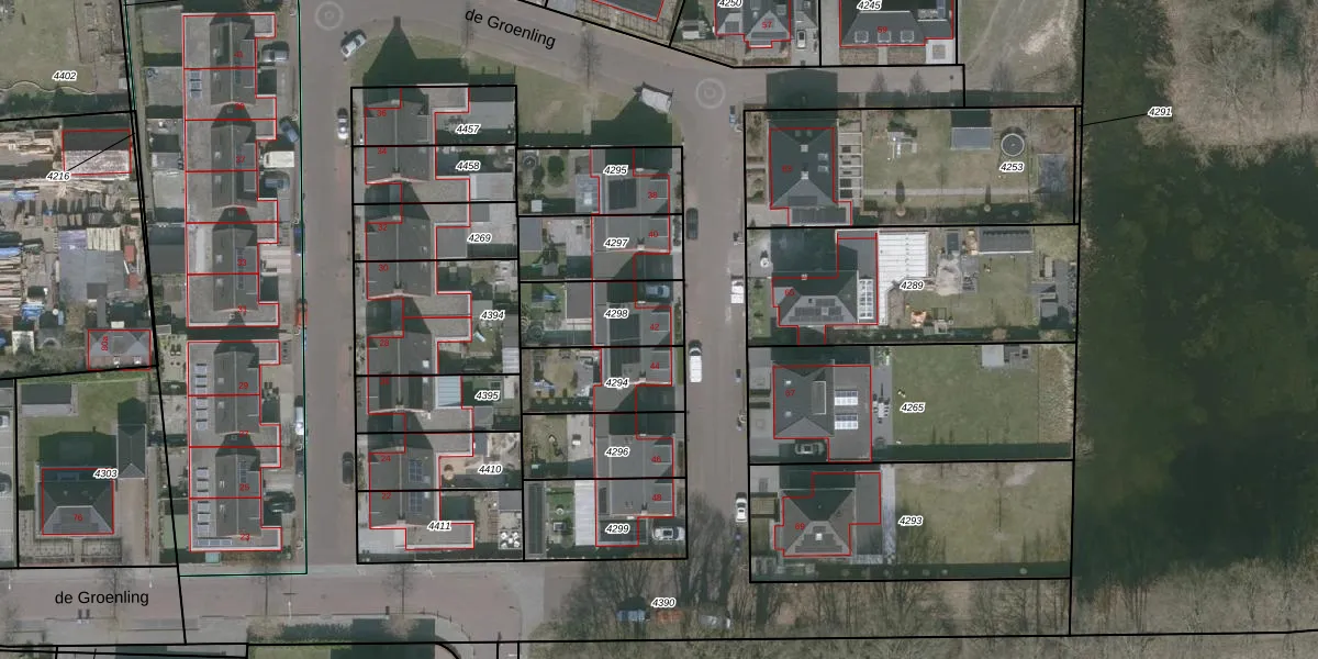 Het perceel waarop de Groenling 42 staat heeft een oppervlakte van 249 m². Dit is een middelgroot perceel. De perceeloppervlakte wordt geregistreerd door het Kadaster. Gedetailleerde informatie over de maten van dit perceel kunt u vinden in het rapport Kadastrale kaart met maatvoering van de Groenling 42.