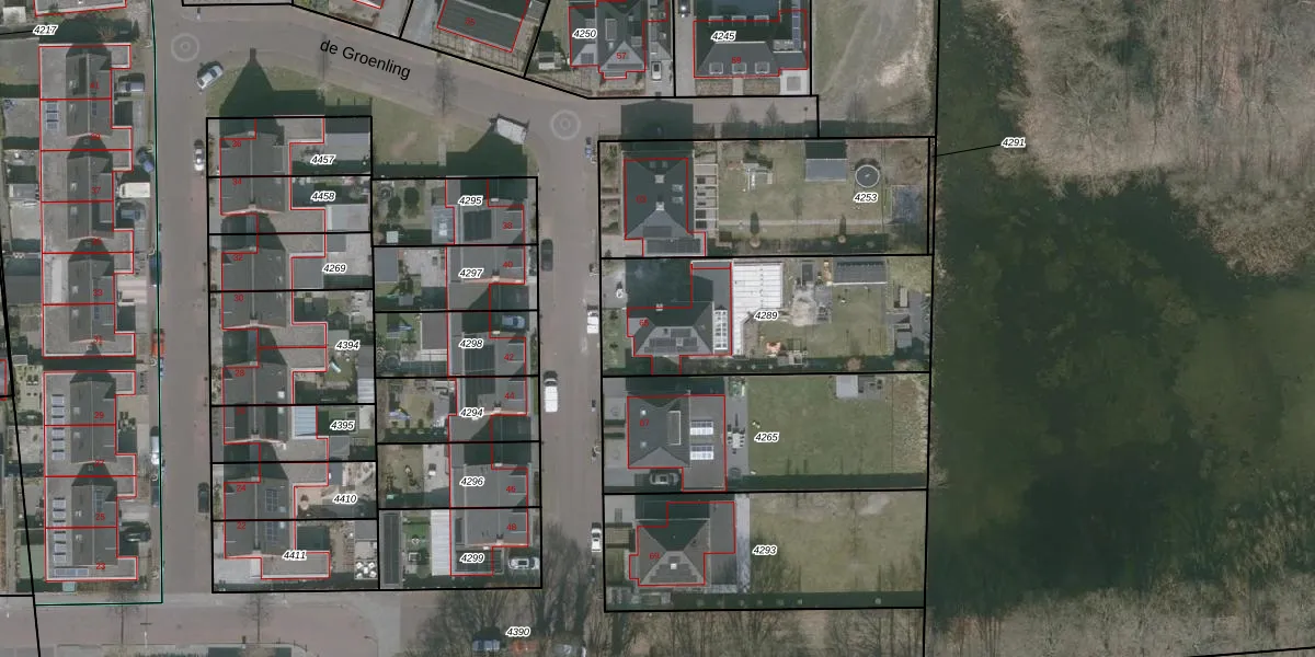 Het perceel waarop de Groenling 65 staat heeft een oppervlakte van 900 m². Dit is een groot perceel. De perceeloppervlakte wordt geregistreerd door het Kadaster. Gedetailleerde informatie over de maten van dit perceel kunt u vinden in het rapport Kadastrale kaart met maatvoering van de Groenling 65.