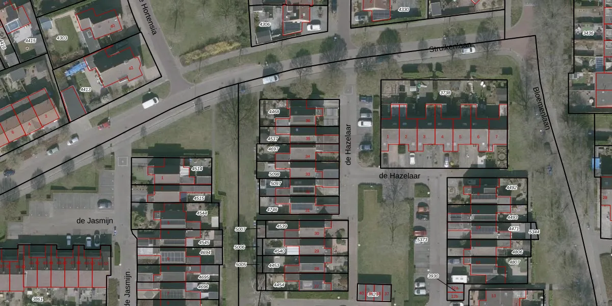 Het perceel waarop de Hazelaar 34 staat heeft een oppervlakte van 154 m². Dit is een middelgroot perceel. De perceeloppervlakte wordt geregistreerd door het Kadaster. Gedetailleerde informatie over de maten van dit perceel kunt u vinden in het rapport Kadastrale kaart met maatvoering van de Hazelaar 34.