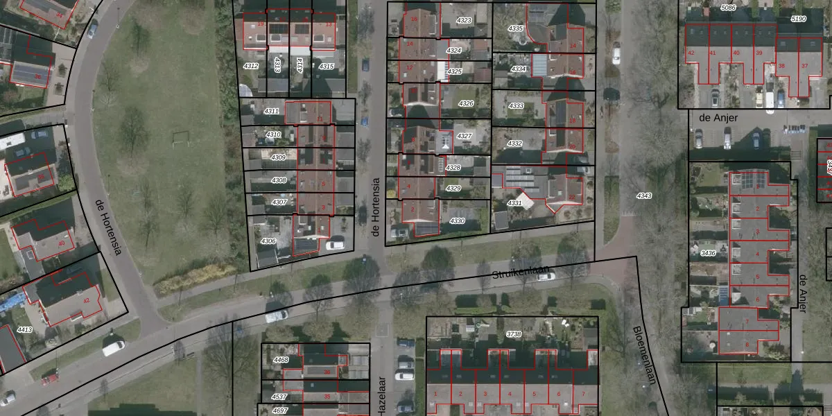 Het perceel waarop de Hortensia 2 staat heeft een oppervlakte van 248 m². Dit is een middelgroot perceel. De perceeloppervlakte wordt geregistreerd door het Kadaster. Gedetailleerde informatie over de maten van dit perceel kunt u vinden in het rapport Kadastrale kaart met maatvoering van de Hortensia 2.