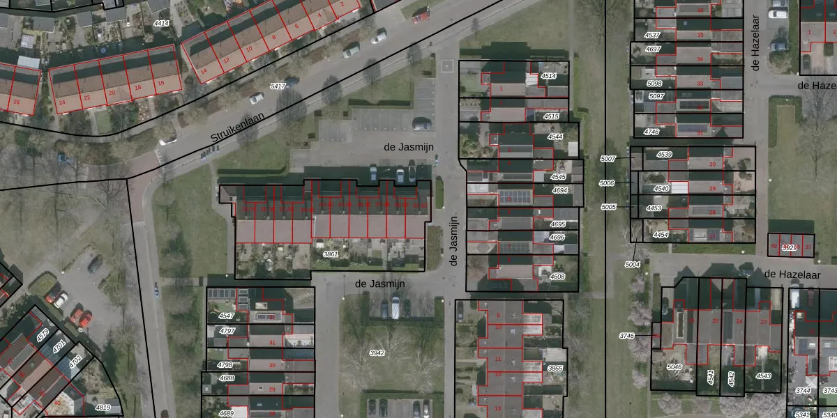 Het perceel waarop de Jasmijn 51 staat heeft een oppervlakte van 1015 m². Dit is een zeer groot perceel. De perceeloppervlakte wordt geregistreerd door het Kadaster. Gedetailleerde informatie over de maten van dit perceel kunt u vinden in het rapport Kadastrale kaart met maatvoering van de Jasmijn 51.