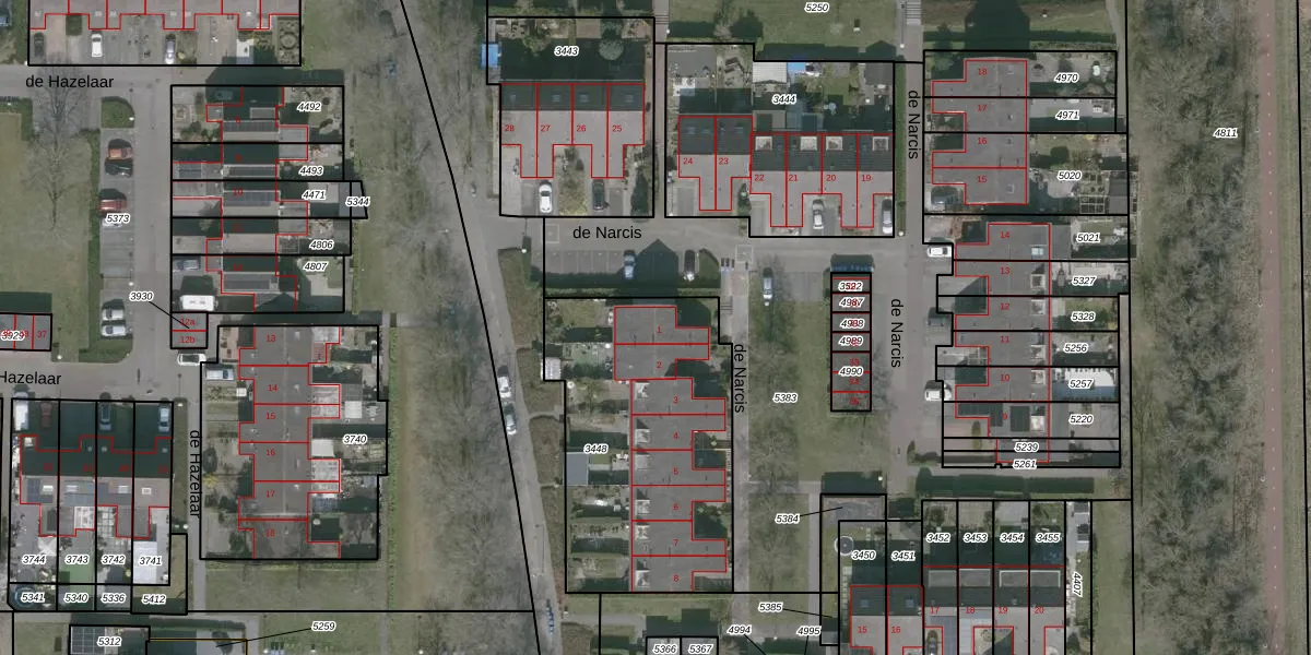 Het perceel waarop de Narcis 1 staat heeft een oppervlakte van 1167 m². Dit is een zeer groot perceel. De perceeloppervlakte wordt geregistreerd door het Kadaster. Gedetailleerde informatie over de maten van dit perceel kunt u vinden in het rapport Kadastrale kaart met maatvoering van de Narcis 1.