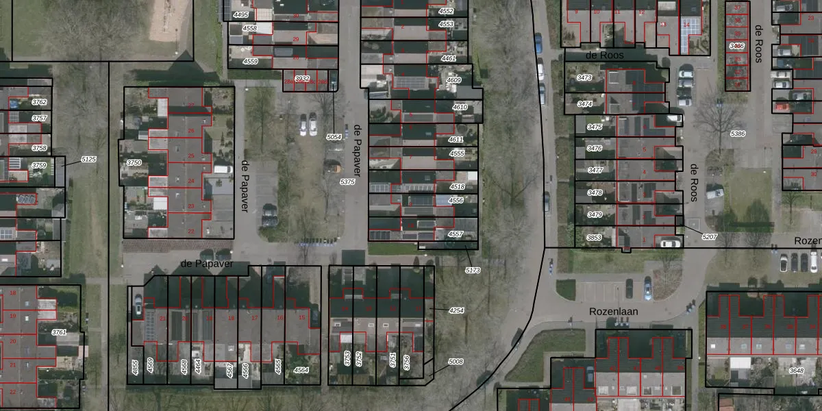 Gebruik de zoekbalk of klik op een perceel voor informatie over de adressen binnen dit perceel.