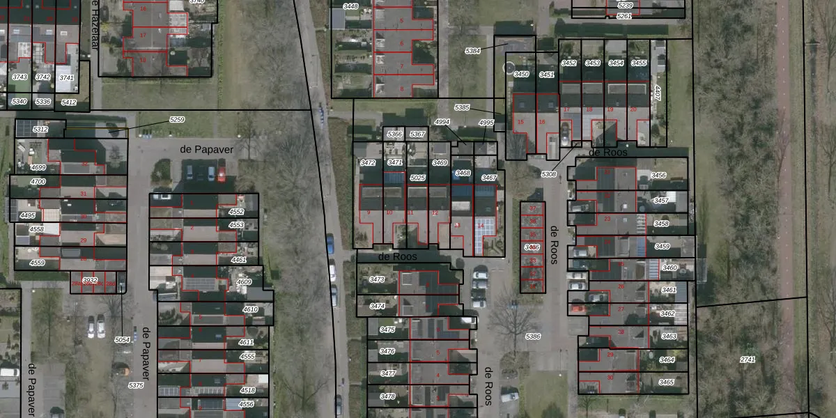 Het perceel waarop de Roos 11 staat heeft een oppervlakte van 139 m². Dit is een middelgroot perceel. De perceeloppervlakte wordt geregistreerd door het Kadaster. Gedetailleerde informatie over de maten van dit perceel kunt u vinden in het rapport Kadastrale kaart met maatvoering van de Roos 11.