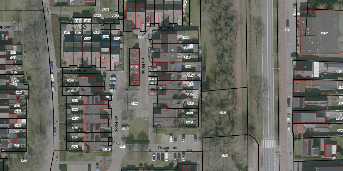 Het perceel waarop de Roos 26 staat heeft een oppervlakte van 143 m². Dit is een middelgroot perceel. De perceeloppervlakte wordt geregistreerd door het Kadaster. Gedetailleerde informatie over de maten van dit perceel kunt u vinden in het rapport Kadastrale kaart met maatvoering van de Roos 26.