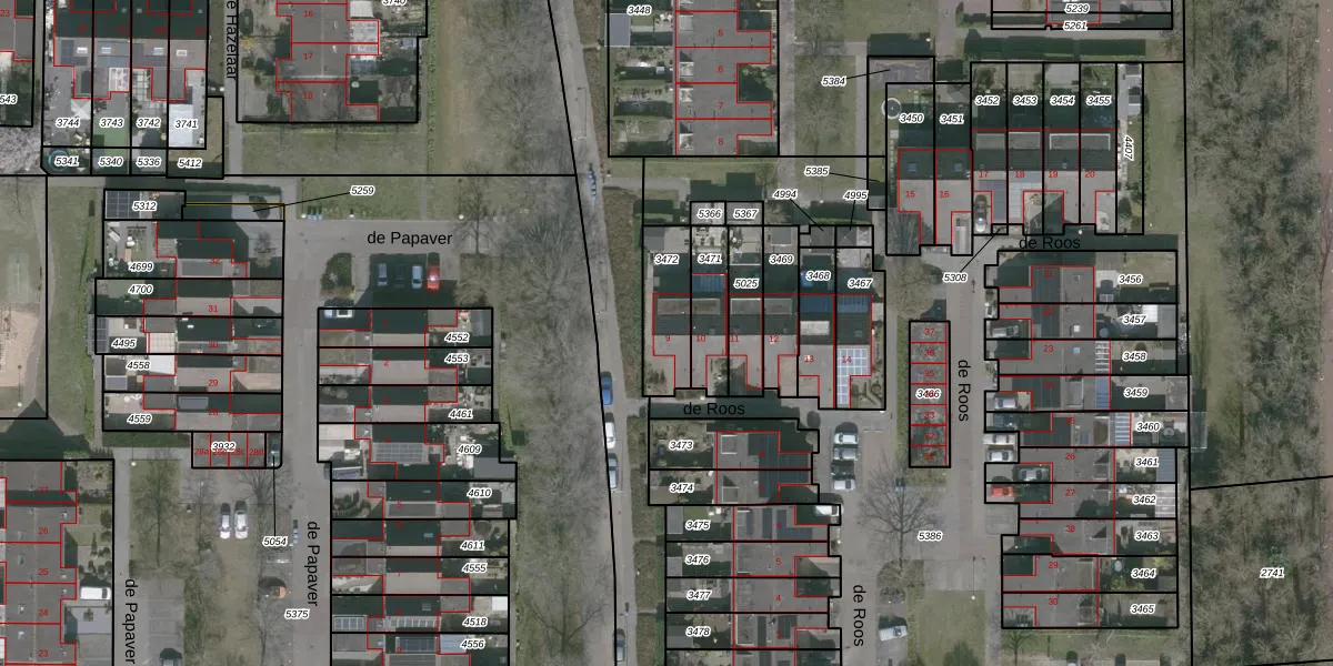 Het perceel waarop de Roos 9 staat heeft een oppervlakte van 176 m². Dit is een middelgroot perceel. De perceeloppervlakte wordt geregistreerd door het Kadaster. Gedetailleerde informatie over de maten van dit perceel kunt u vinden in het rapport Kadastrale kaart met maatvoering van de Roos 9.