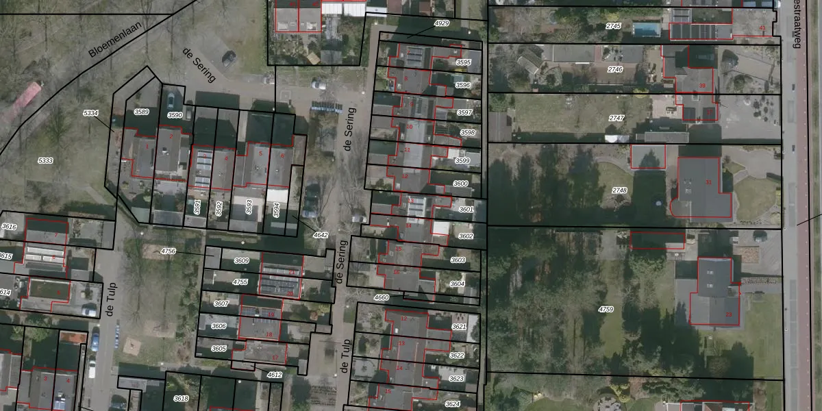 Gebruik de zoekbalk of klik op een perceel voor informatie over de adressen binnen dit perceel.