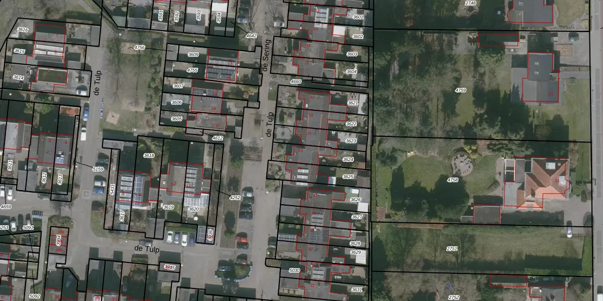 Het perceel waarop de Tulp 15 staat heeft een oppervlakte van 187 m². Dit is een middelgroot perceel. De perceeloppervlakte wordt geregistreerd door het Kadaster. Gedetailleerde informatie over de maten van dit perceel kunt u vinden in het rapport Kadastrale kaart met maatvoering van de Tulp 15.