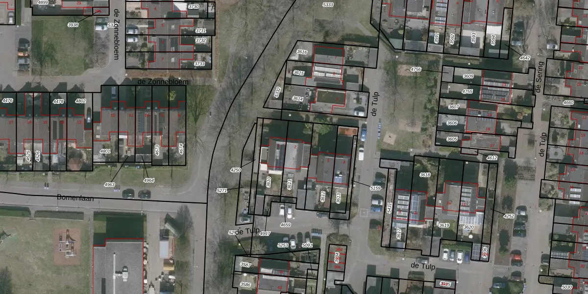 Het perceel waarop de Tulp 2 staat heeft een oppervlakte van 232 m². Dit is een middelgroot perceel. De perceeloppervlakte wordt geregistreerd door het Kadaster. Gedetailleerde informatie over de maten van dit perceel kunt u vinden in het rapport Kadastrale kaart met maatvoering van de Tulp 2.