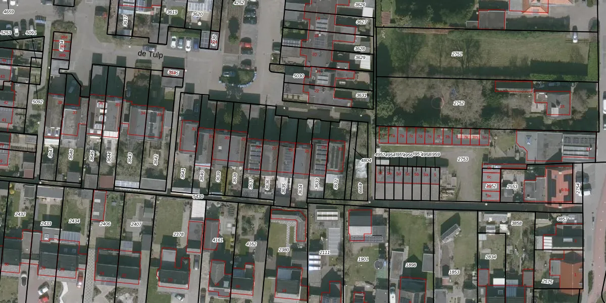 Het perceel waarop de Tulp 25 staat heeft een oppervlakte van 161 m². Dit is een middelgroot perceel. De perceeloppervlakte wordt geregistreerd door het Kadaster. Gedetailleerde informatie over de maten van dit perceel kunt u vinden in het rapport Kadastrale kaart met maatvoering van de Tulp 25.