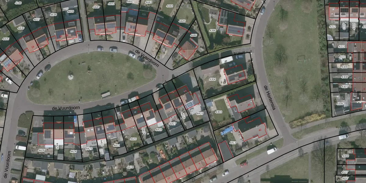 Gebruik de zoekbalk of klik op een perceel voor informatie over de adressen binnen dit perceel.