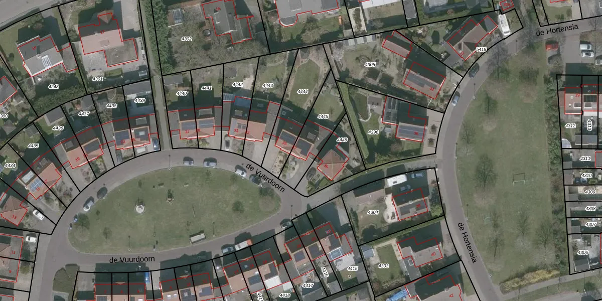 Het perceel waarop de Vuurdoorn 37 staat heeft een oppervlakte van 322 m². Dit is een groot perceel. De perceeloppervlakte wordt geregistreerd door het Kadaster. Gedetailleerde informatie over de maten van dit perceel kunt u vinden in het rapport Kadastrale kaart met maatvoering van de Vuurdoorn 37.