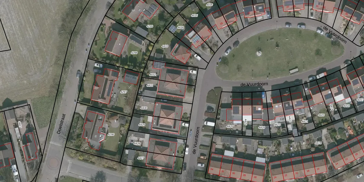 Het perceel waarop de Vuurdoorn 9 staat heeft een oppervlakte van 303 m². Dit is een groot perceel. De perceeloppervlakte wordt geregistreerd door het Kadaster. Gedetailleerde informatie over de maten van dit perceel kunt u vinden in het rapport Kadastrale kaart met maatvoering van de Vuurdoorn 9.