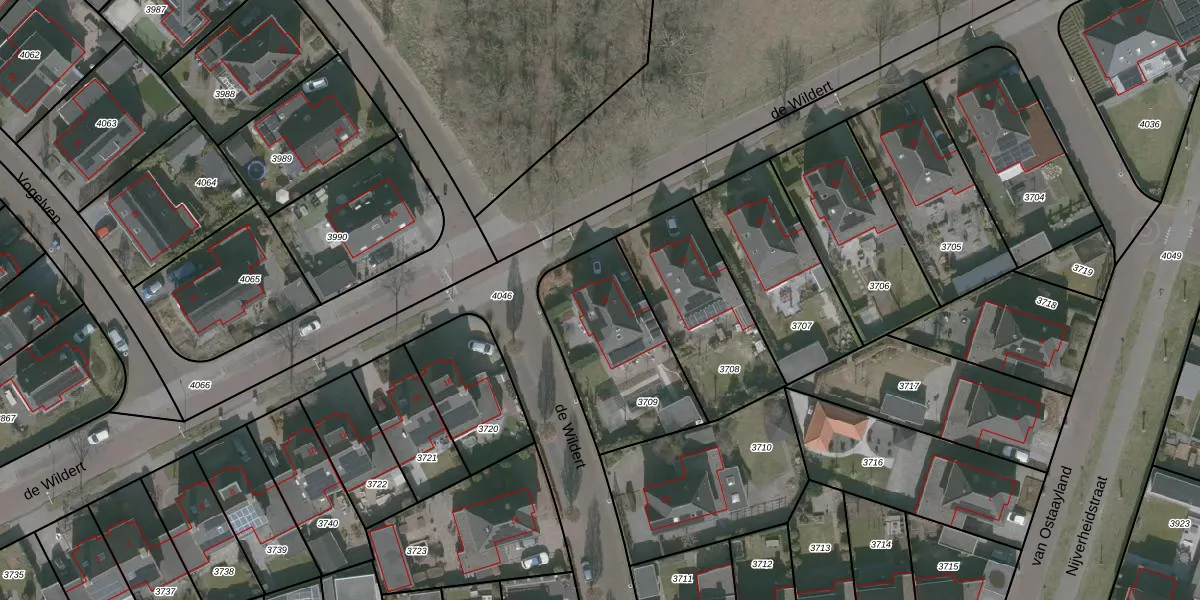 Het perceel waarop de Wildert 22 staat heeft een oppervlakte van 561 m². Dit is een groot perceel. De perceeloppervlakte wordt geregistreerd door het Kadaster. Gedetailleerde informatie over de maten van dit perceel kunt u vinden in het rapport Kadastrale kaart met maatvoering van de Wildert 22.