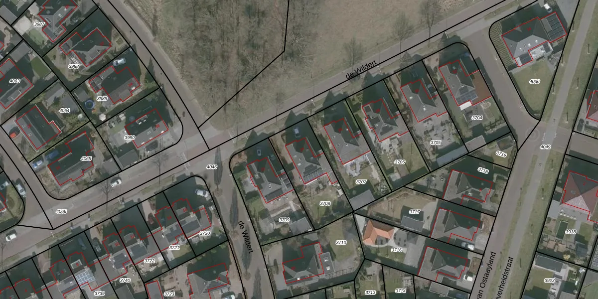 Het perceel waarop de Wildert 24 staat heeft een oppervlakte van 503 m². Dit is een groot perceel. De perceeloppervlakte wordt geregistreerd door het Kadaster. Gedetailleerde informatie over de maten van dit perceel kunt u vinden in het rapport Kadastrale kaart met maatvoering van de Wildert 24.