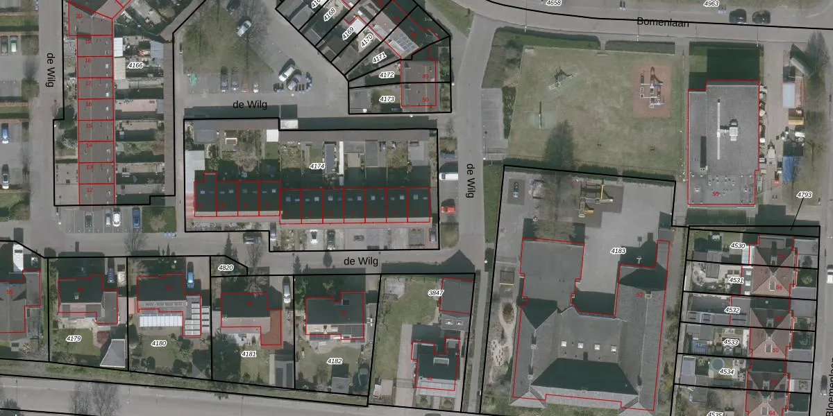 de Wilg 1 is gelegen op kadastraal perceel WDT00G4174. Deze kadastrale aanduiding is uniek en wordt gebruikt door het Kadaster om eigendomsrechten en andere zakelijke rechten vast te leggen. Het perceel maakt onderdeel uit van de kadastrale gemeente Woensdrecht.