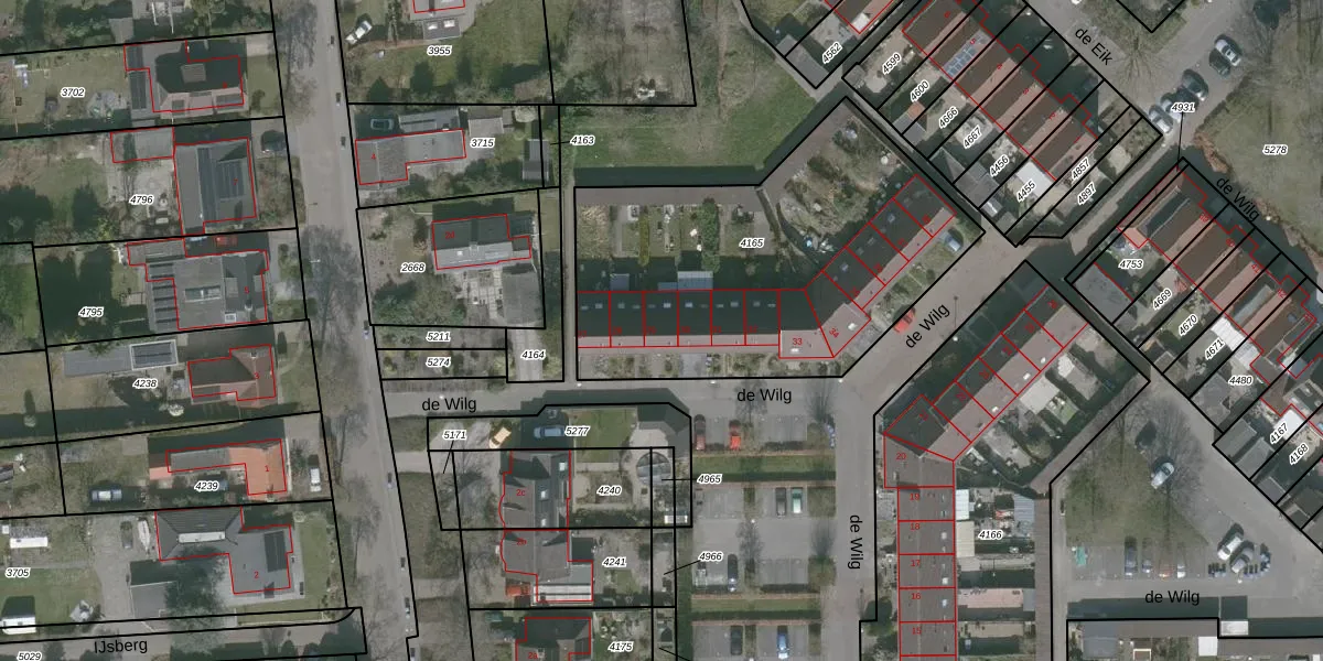 de Wilg 29 is gelegen op kadastraal perceel WDT00G4165. Deze kadastrale aanduiding is uniek en wordt gebruikt door het Kadaster om eigendomsrechten en andere zakelijke rechten vast te leggen. Het perceel maakt onderdeel uit van de kadastrale gemeente Woensdrecht.