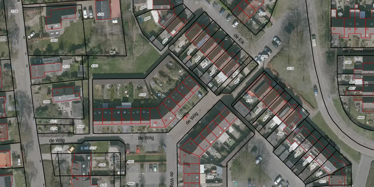de Wilg 37 is gelegen op kadastraal perceel WDT00G4165. Deze kadastrale aanduiding is uniek en wordt gebruikt door het Kadaster om eigendomsrechten en andere zakelijke rechten vast te leggen. Het perceel maakt onderdeel uit van de kadastrale gemeente Woensdrecht.
