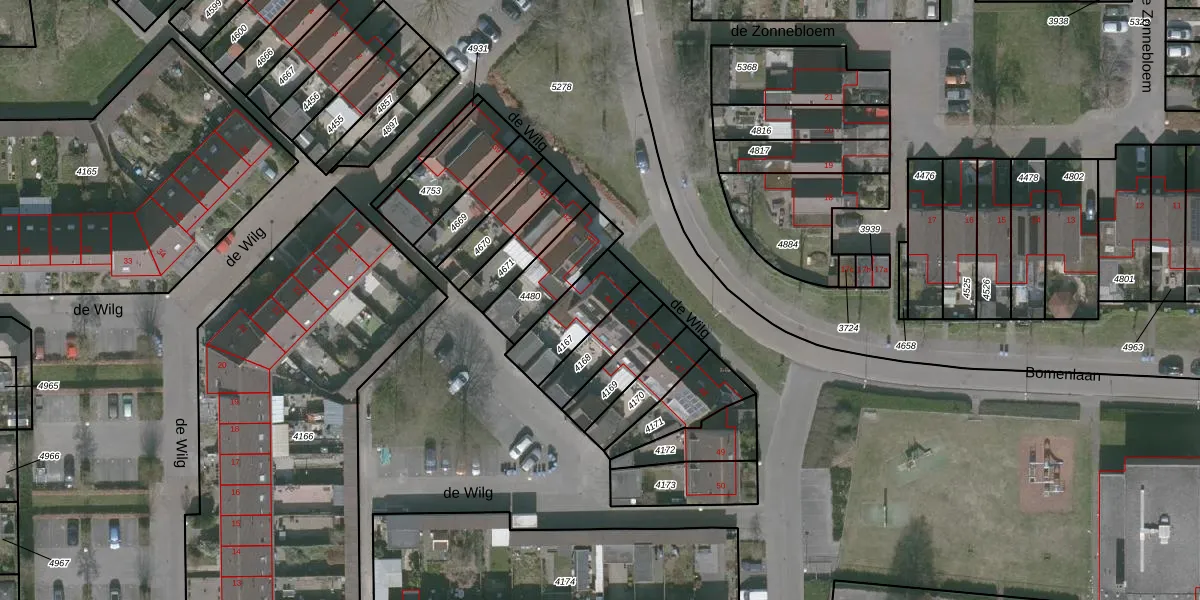 Het perceel waarop de Wilg 44 staat heeft een oppervlakte van 187 m². Dit is een middelgroot perceel. De perceeloppervlakte wordt geregistreerd door het Kadaster. Gedetailleerde informatie over de maten van dit perceel kunt u vinden in het rapport Kadastrale kaart met maatvoering van de Wilg 44.