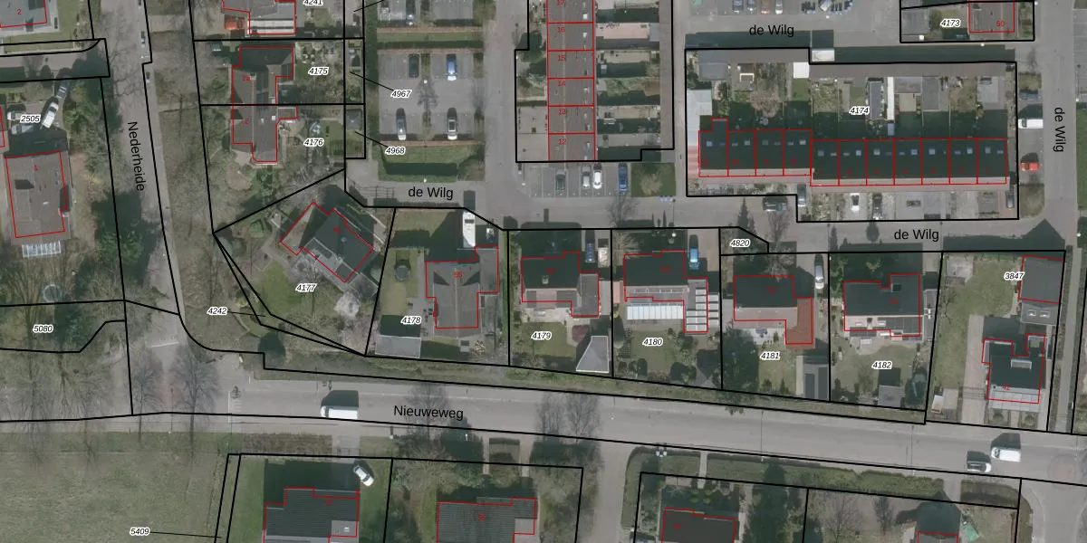 Het perceel waarop de Wilg 54 staat heeft een oppervlakte van 497 m². Dit is een groot perceel. De perceeloppervlakte wordt geregistreerd door het Kadaster. Gedetailleerde informatie over de maten van dit perceel kunt u vinden in het rapport Kadastrale kaart met maatvoering van de Wilg 54.