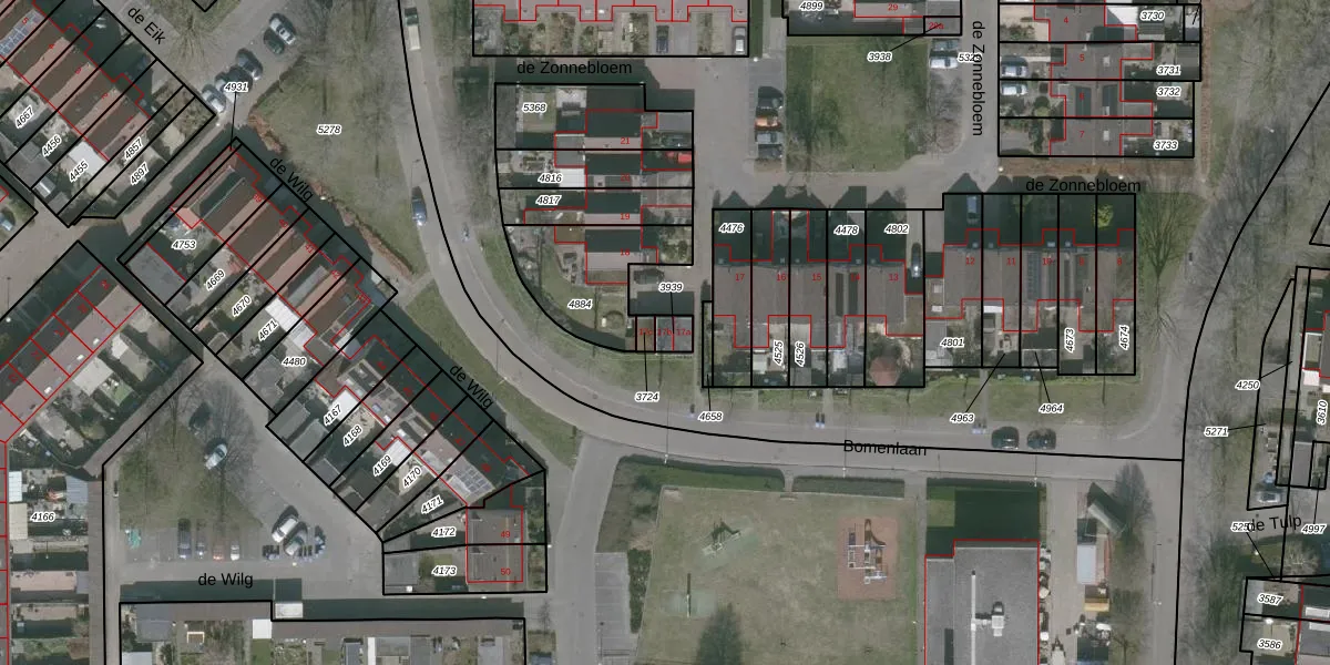 Het perceel waarop de Zonnebloem 17-b staat heeft een oppervlakte van 30 m². Dit is een klein perceel. De perceeloppervlakte wordt geregistreerd door het Kadaster. Gedetailleerde informatie over de maten van dit perceel kunt u vinden in het rapport Kadastrale kaart met maatvoering van de Zonnebloem 17-b.