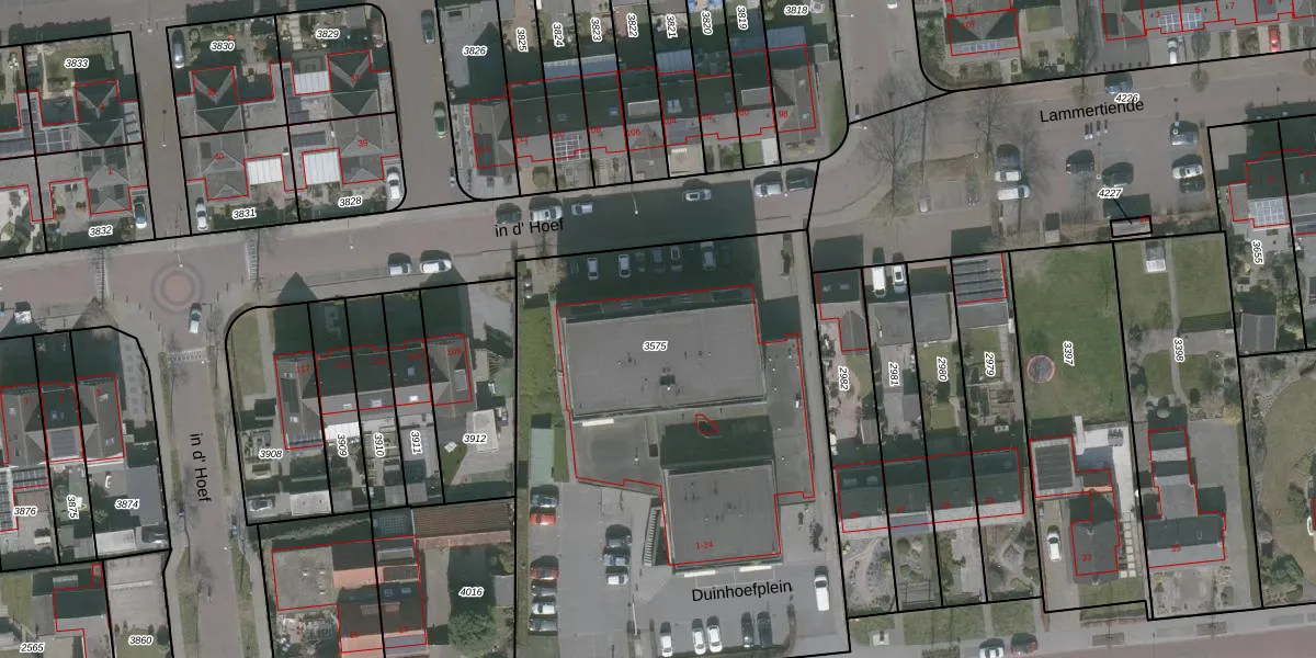 Het perceel waarop Duinhoefplein 17 staat heeft een oppervlakte van 3095 m². Dit is een zeer groot perceel. De perceeloppervlakte wordt geregistreerd door het Kadaster. Gedetailleerde informatie over de maten van dit perceel kunt u vinden in het rapport Kadastrale kaart met maatvoering van Duinhoefplein 17.