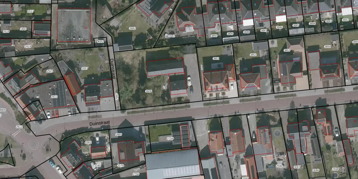 Het perceel waarop Duinstraat 3 staat heeft een oppervlakte van 1495 m². Dit is een zeer groot perceel. De perceeloppervlakte wordt geregistreerd door het Kadaster. Gedetailleerde informatie over de maten van dit perceel kunt u vinden in het rapport Kadastrale kaart met maatvoering van Duinstraat 3.